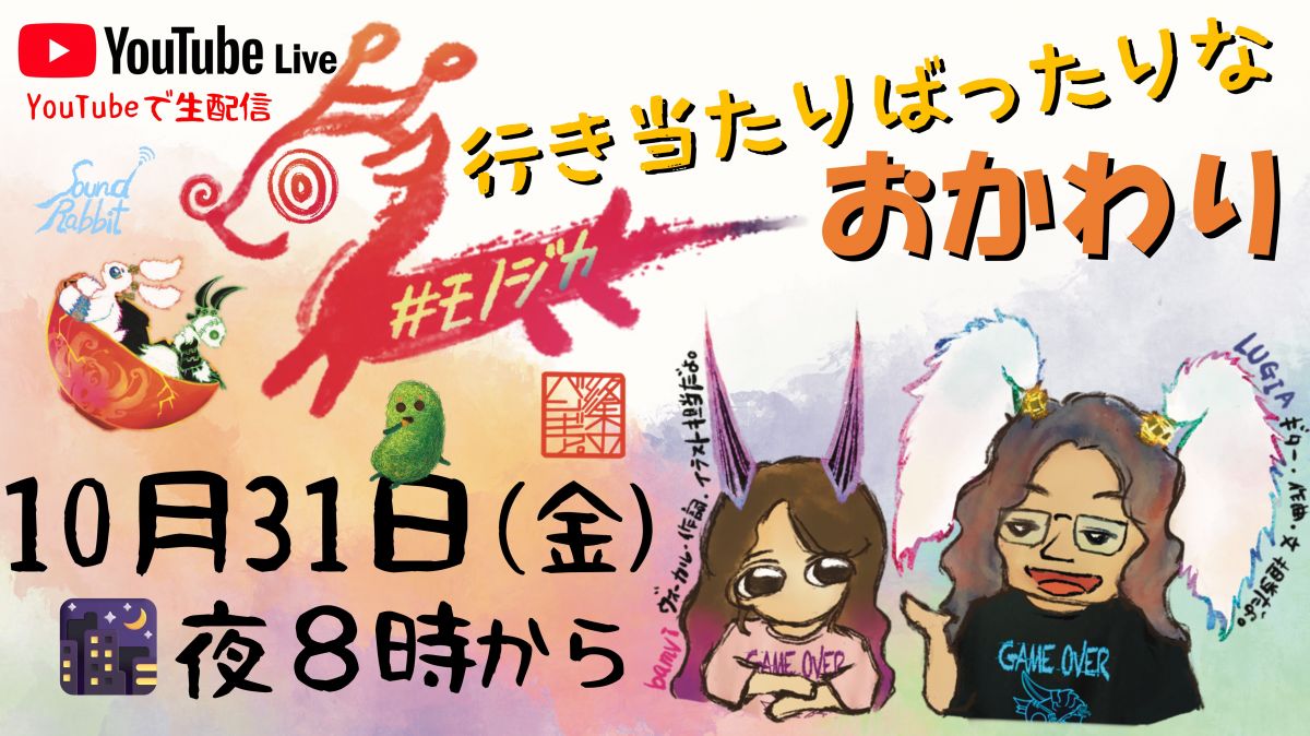 月例配信「行き当たりばったりなモノジカ おかわり」20時~22時予定です。Youtubeチャンネル/ツイキャス